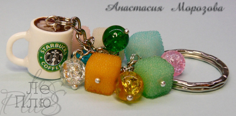 Материалы: полимерная глина, жидкая полимерная глина, лак, микробисер, стеклянные бусины, металлическая фурнитура